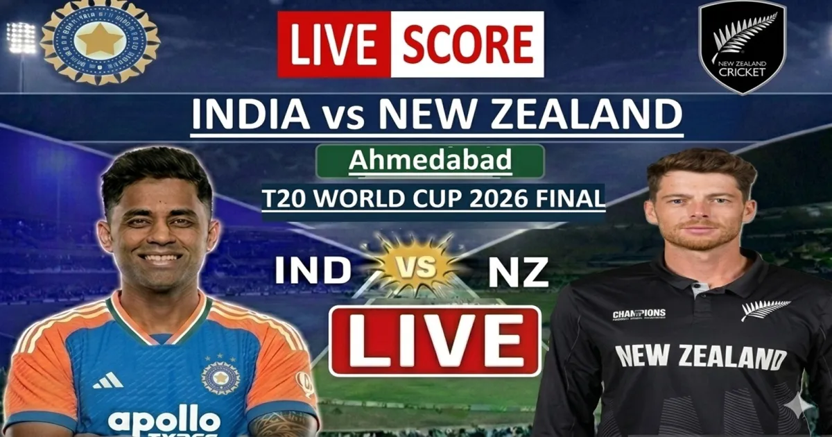 ICC T20 विश्व कप 2026 के फाइनल मुकाबले में भारतीय राष्ट्रीय क्रिकेट टीम और न्यूजीलैंड राष्ट्रीय क्रिकेट टीम आमने-सामने हैं। यह मुकाबला नरेंद्र मोदी स्टेडियम, अहमदाबाद में खेला जा रहा है।